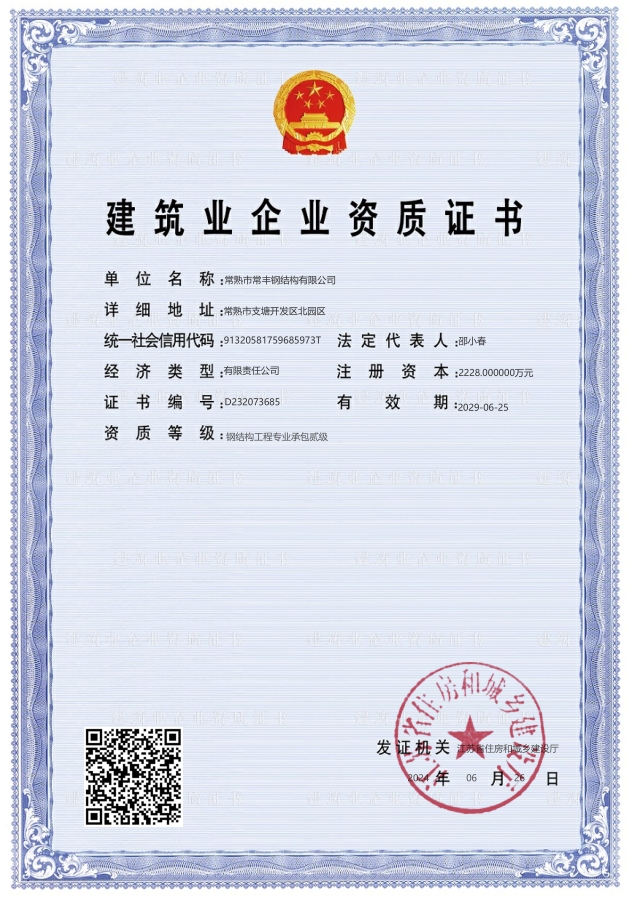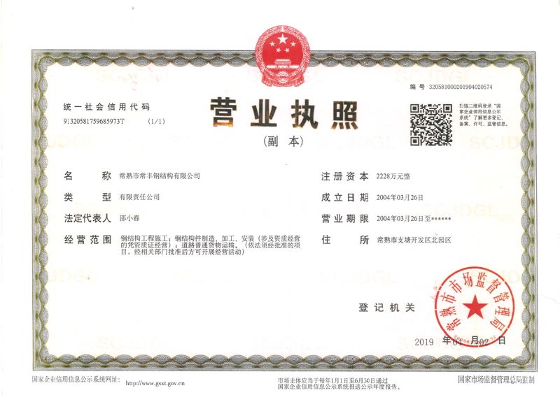 常熟市常豐鋼結構有限公司,位于風景秀麗的常熟市支塘鎮(zhèn)(204國道旁)毗領蘇嘉杭高速公路,水陸交通十分便利。